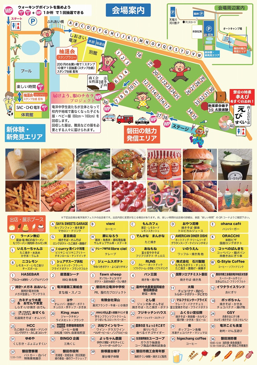 | ⑤国際ソロプチミスト磐田 | 焼きそば・焼き鳥 | ㉕HCC | たこ焼き・たい焼き・ロングポテト・みしまコロッケ 他 |