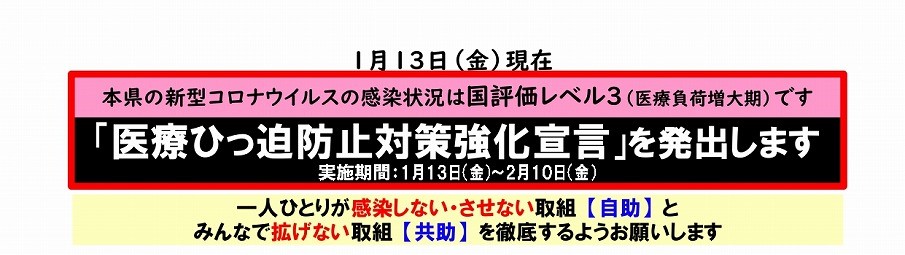 県内の医療提供体制が崩壊しないために、「医療ひっ迫防止対策強化宣言」を発出します。