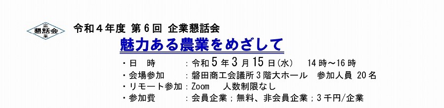 令和4年度 第6回 企業懇話会「魅力ある農業をめざして」について、ご案内いたします。