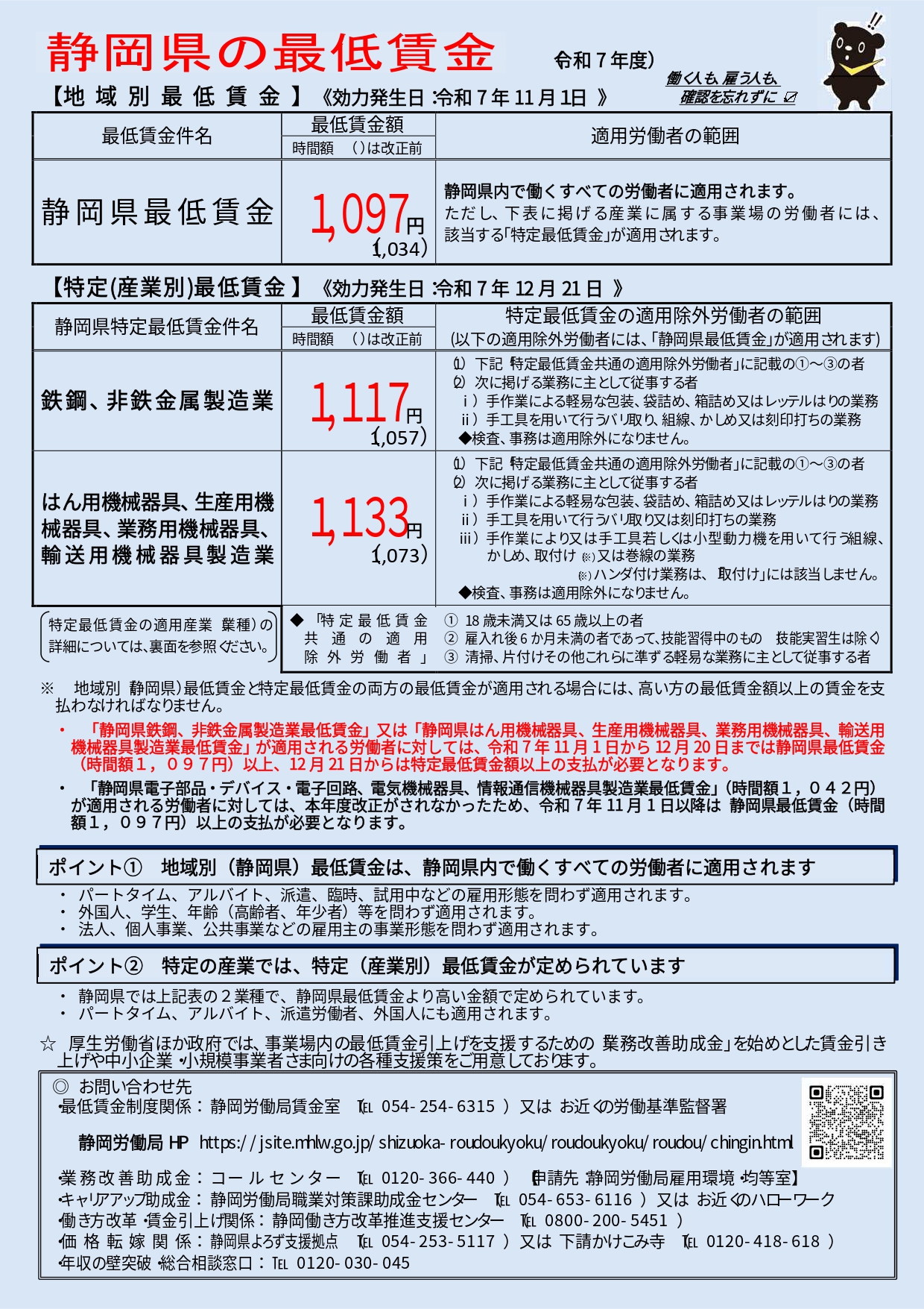 静岡労働局賃金室☎054‐254‐6315又はお近くの労働基準監督署